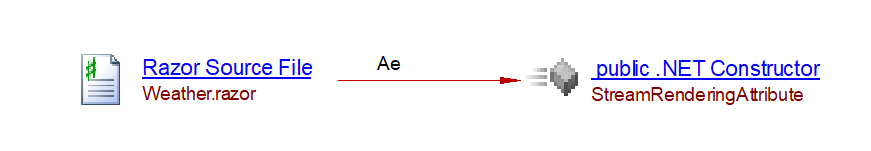 The analyzer will create an accessExecLink from the razor file to the constructor of the attribute (in the example StreamRendering) and add the bookmark on the razor file: