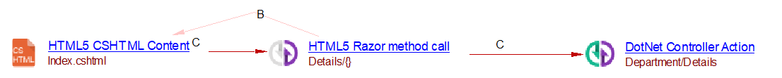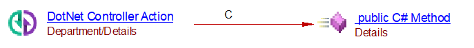 A DotNet Controller Action is created for each controller method, and a call link is created from this action to the method: