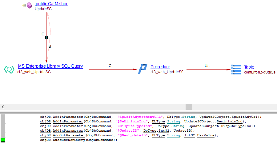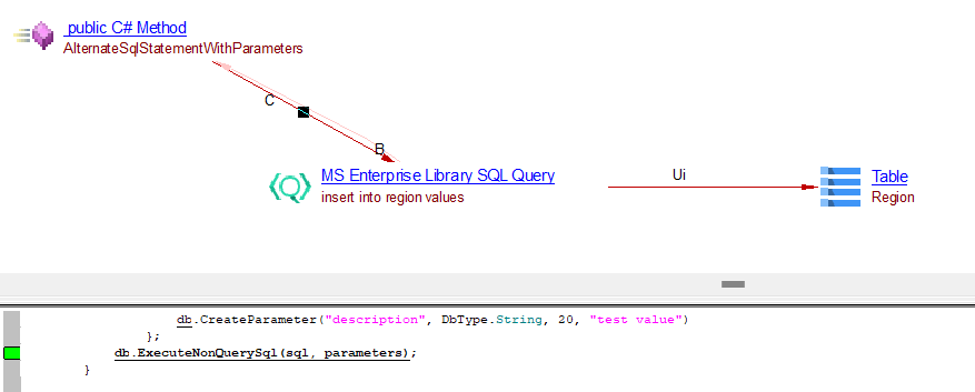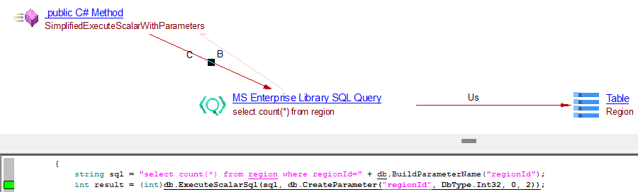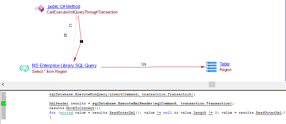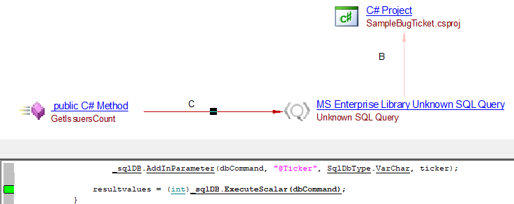 | callLink | C# Method | MS Enterprise Library SQL Query MS Enterprise Library Unknown SQL Query |