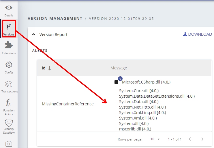 | Using .NET Analyzer ≥ 1.1 | When using .NET Analyzer ≥ 1.1, the .NET Framework assemblies are provided in the extension itself (as listed in the section Dependent frameworks and third-party packages provided in the extension in the extension documentation) and they will be used to resolve references to specific assemblies that have been used by the Application source code. Therefore it is not necessary to declare the location of these .NET Framework assemblies. .NET Analyzer ≥ 1.4.3 In these releases, a file called ressources.json is provided in the root of the extension which lists all .NET Framework assemblies shipped with the extension. This file is taken into account during the source code delivery process and any "missing references" type alerts related to .NET Framework assemblies shipped with the extension will no longer be displayed in AIP Console. .NET Analyzer 1.1.0 - 1.4.2 In these releases, "missing references" type alerts will be generated during the source code delivery process for any .NET Framework assemblies used by your application that are delivered in the extension, for example as shown below. These alerts can be safely ignored. The resulting analysis will use the .NET Framework assemblies delivered in the .NET Analyzer extension. Click to enlarge