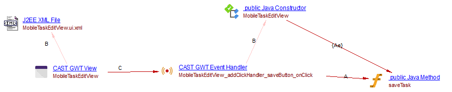 *.ui.xmland links to their handler methods present in java code. - Client/server links created through