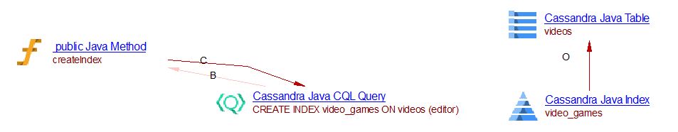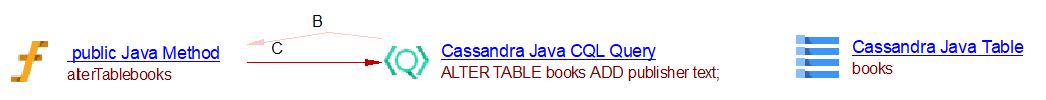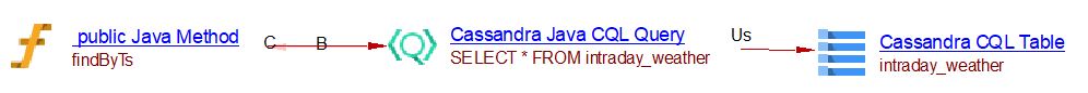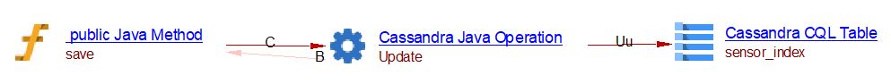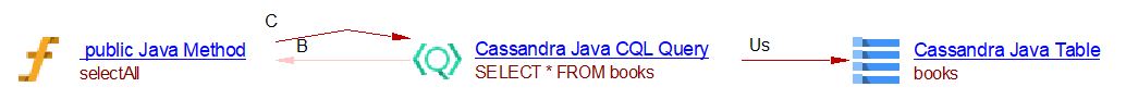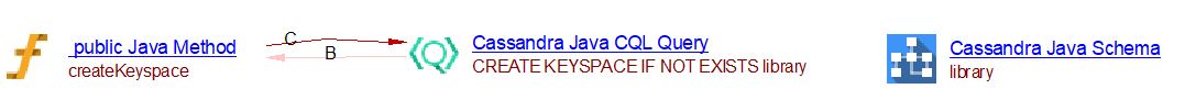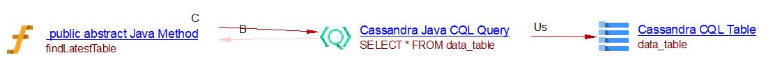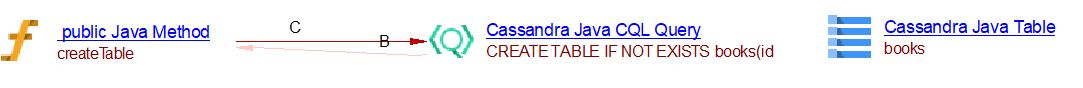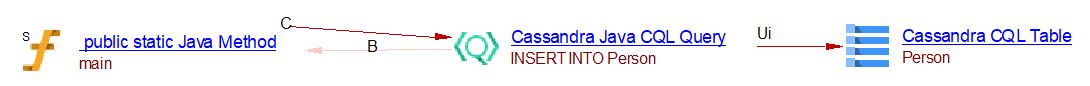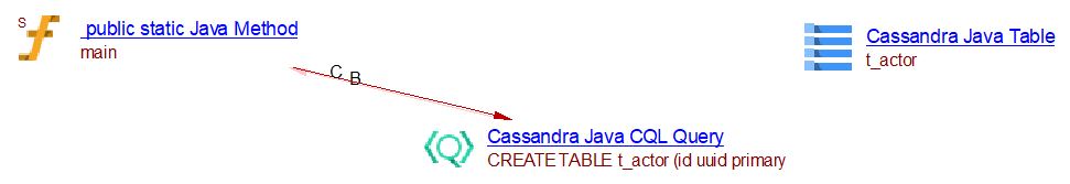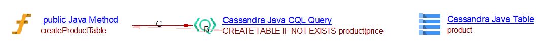 Note that there are two types of table because they may originate in .cql files, Cassandra CQL Table, or in java code, Cassandra Java Table. The Cassandra extension is responsible for creating the tables and the links. This helps form the complete transaction.