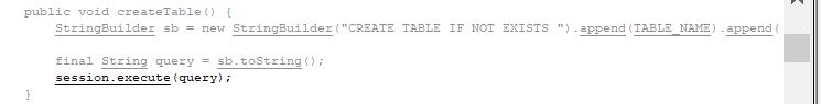 StringBuilder sb = new StringBuilder("CREATE TABLE IF NOT EXISTS ").append(TABLE_NAME).append("(").append("id uuid PRIMARY