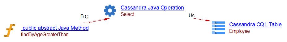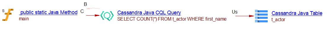 This extension is specifically targeted at the Cassandra for Java framework and should be used in conjunction with the JEE Analyzer extension and the Cassandra extension. CRUD operations and Queries (@Query annotations) are supported, along with datastax queries. When client code uses any of these coding mechanisms, this extension, along with Cassandra extension, will create the links from the calling method to the Cassandra Java CQL Query and between the Cassandra Java CQL Query and the Cassandra Java Table/Cassandra CQL Table.