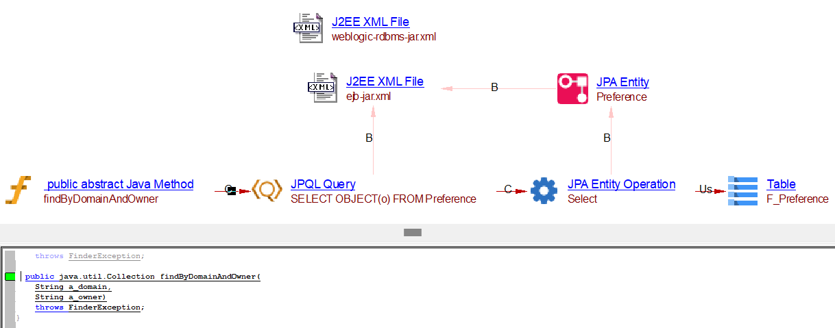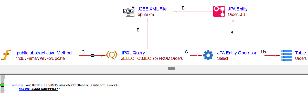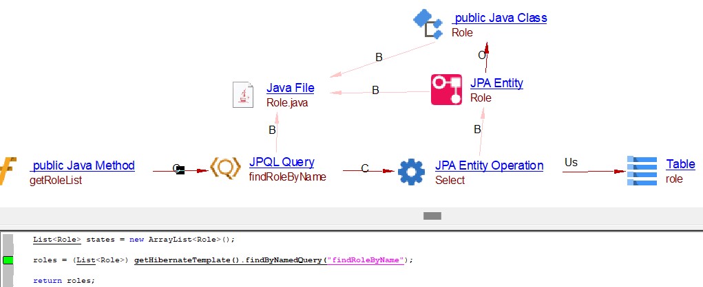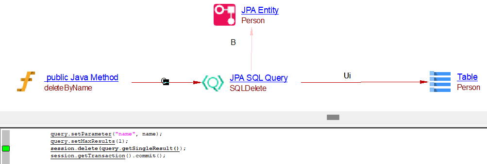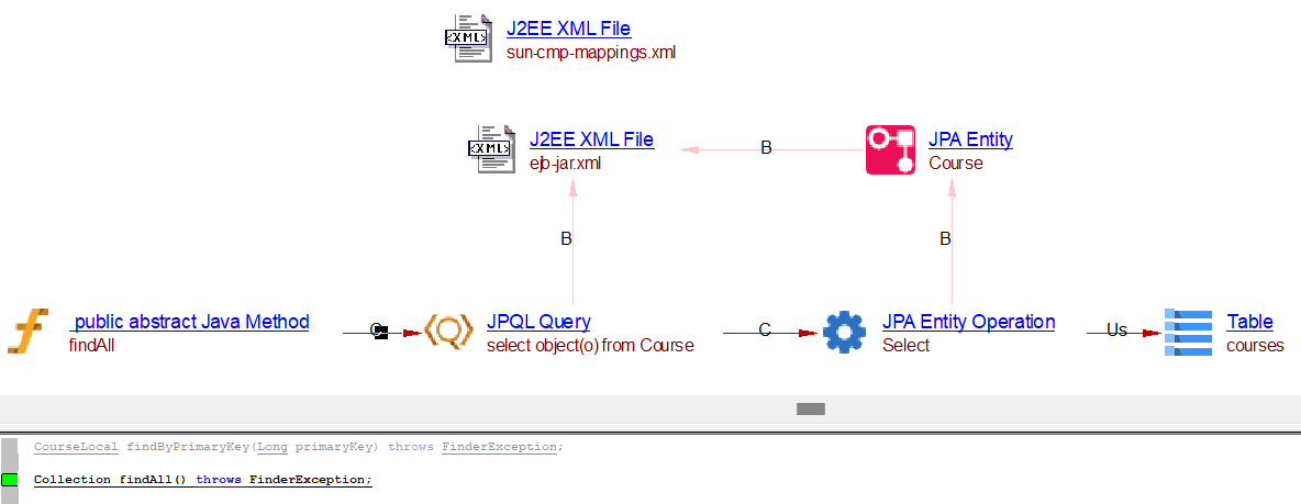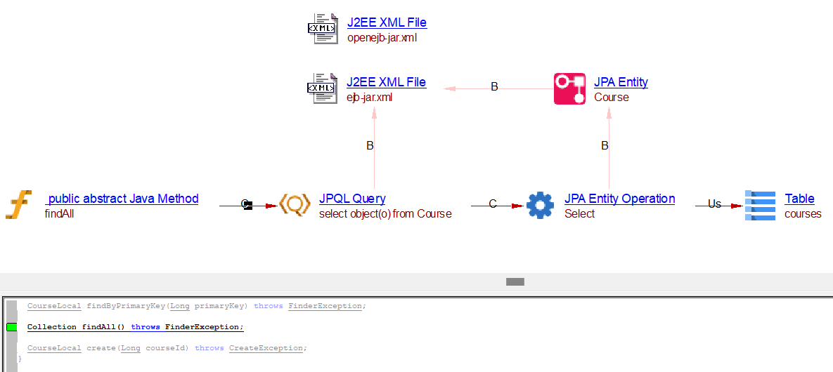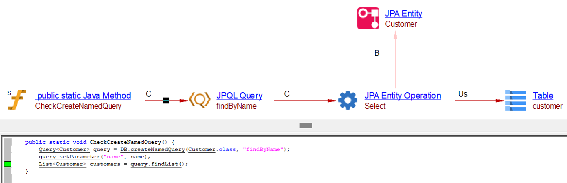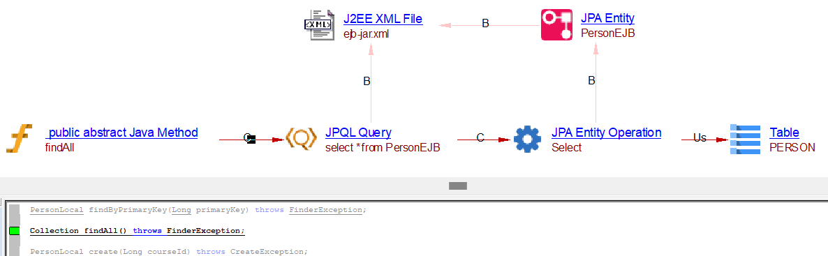- “callLinks” from Java methods to JPA SQL Query objects.
