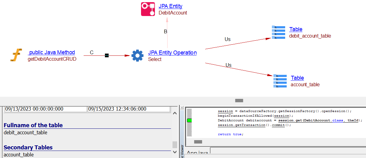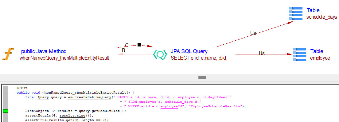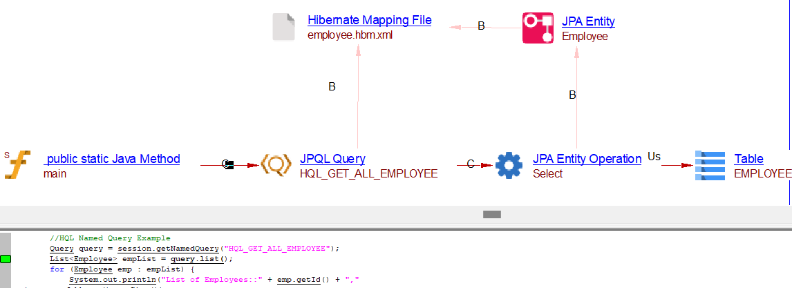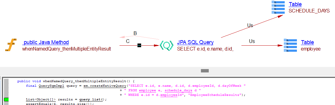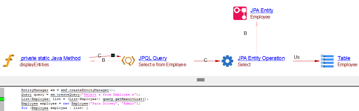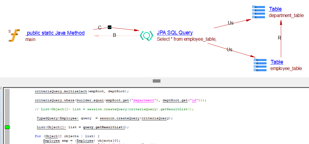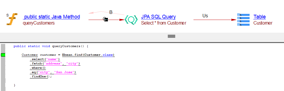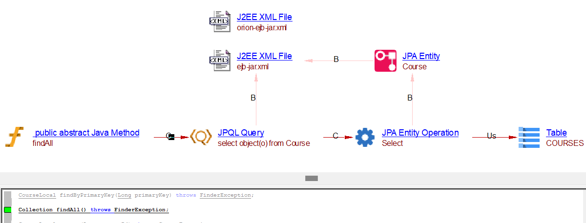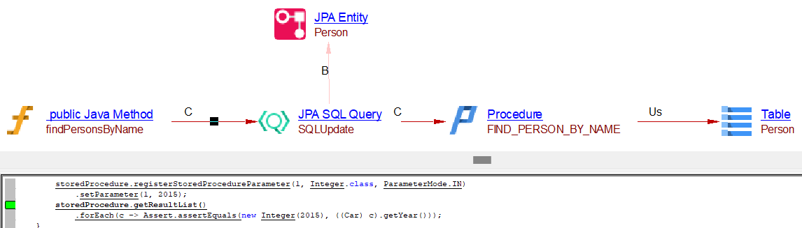 - “callLinks” from Java methods to JPA SQL Query objects.