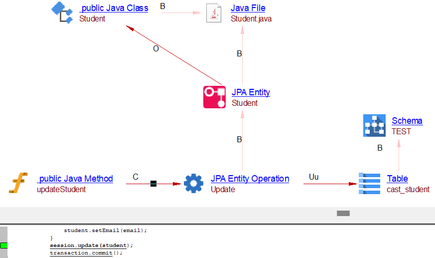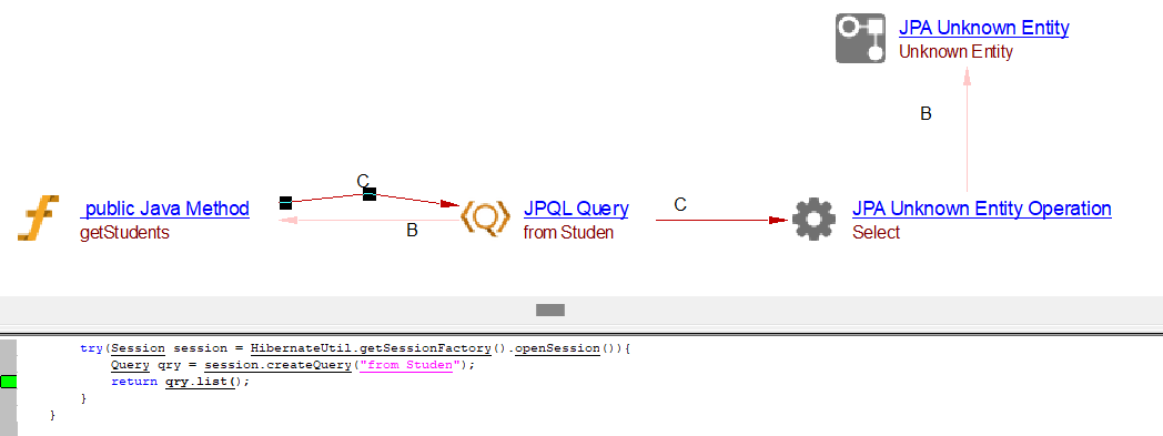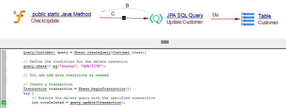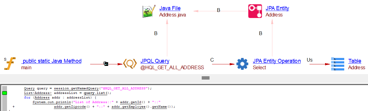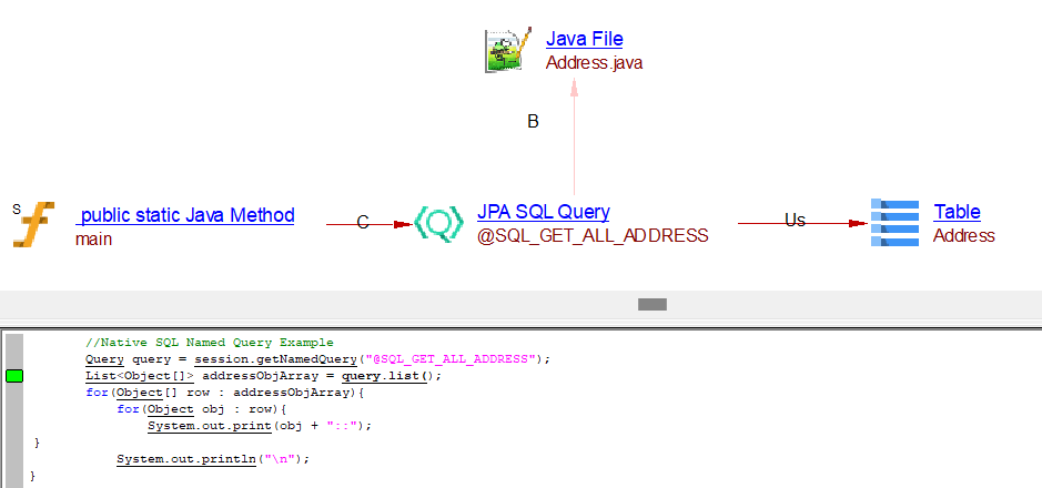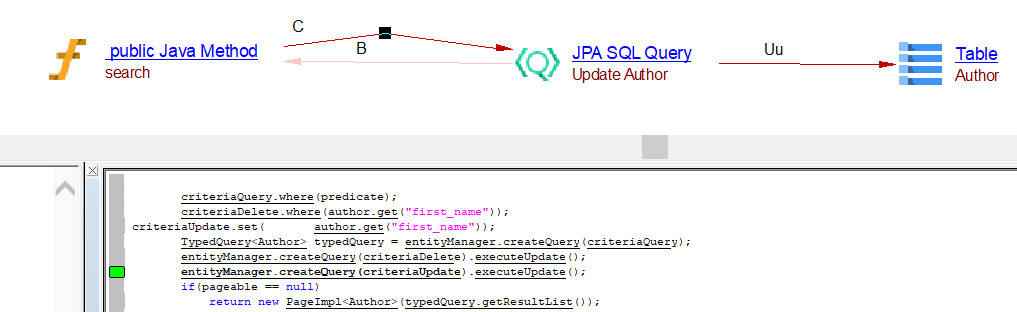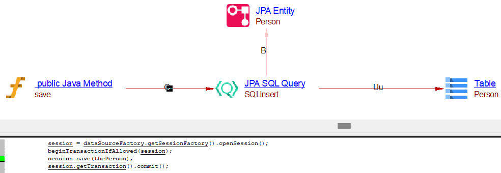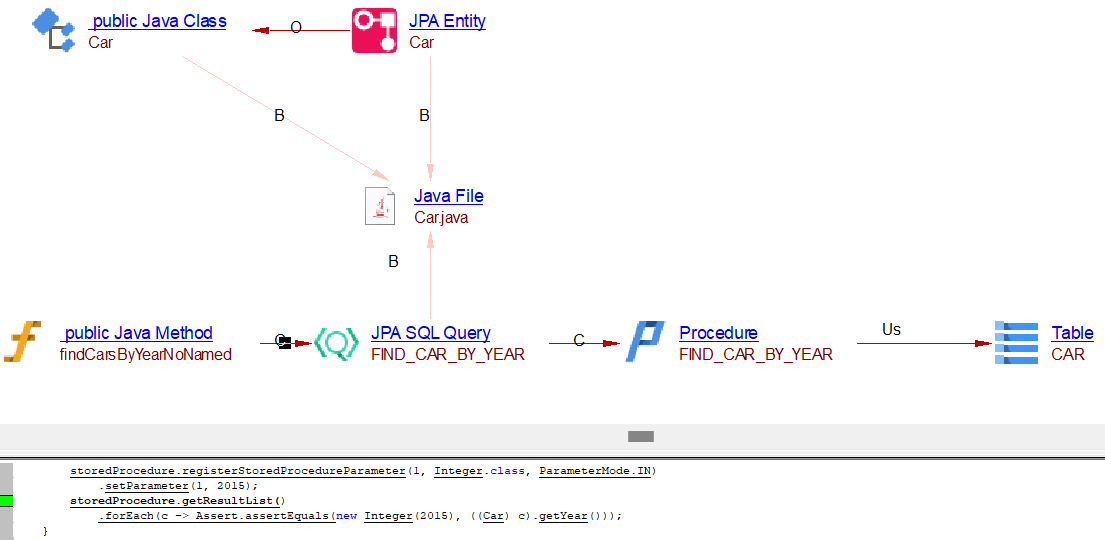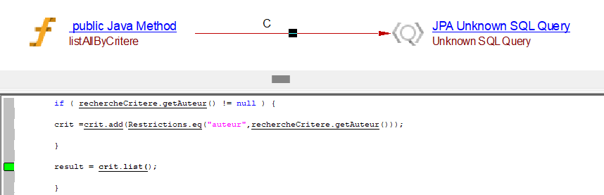 | callLink | Java Method | callLink between the caller Java Method and JPA SQL Query / JPQL Query / JPA Unknown SQL Query object | |