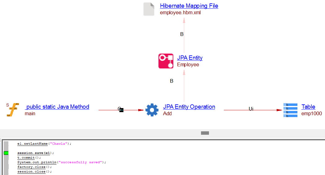 - “callLinks” from Java methods to JPA Entity Operation objects.