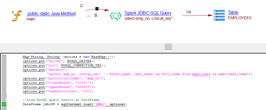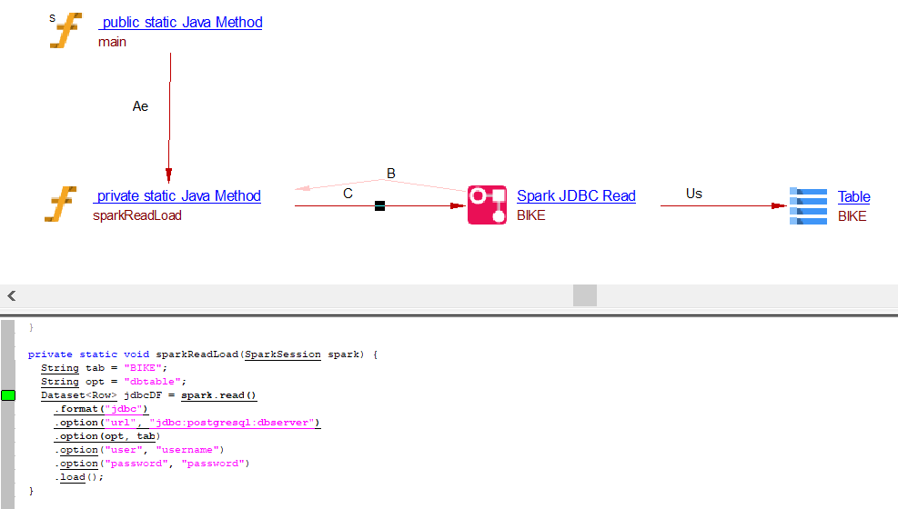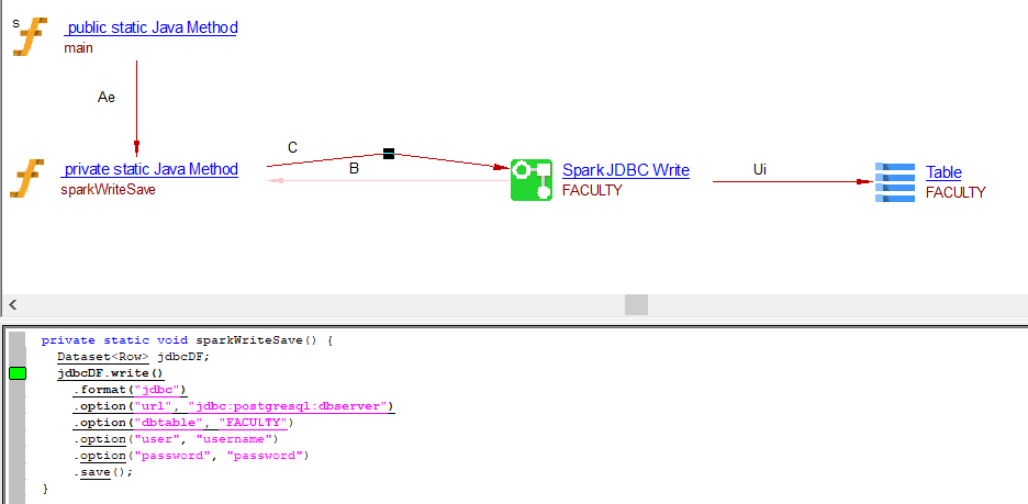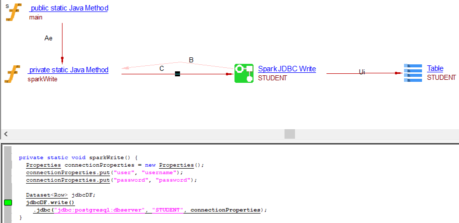 | callLink | Java method | Apache Spark JDBC object (Spark JDBC Read or Spark JDBC Write or Spark JDBC SQL Query or Spark JDBC Unknown SQL Query) |