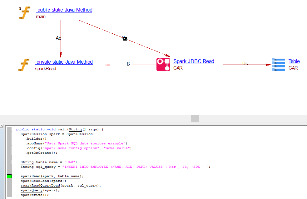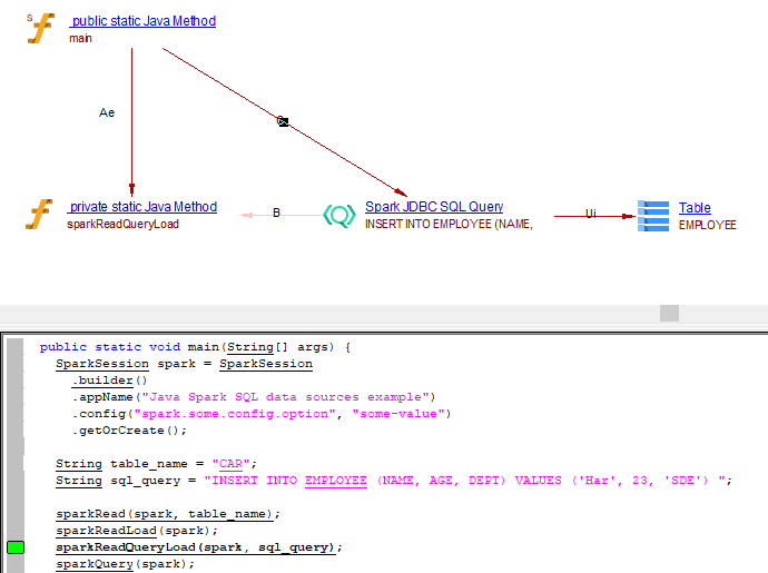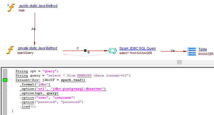 If your Java application contains Apache Spark JDBC API related source code and you want to view these object types and their links, then you should install this extension. More specifically the extension will identify: