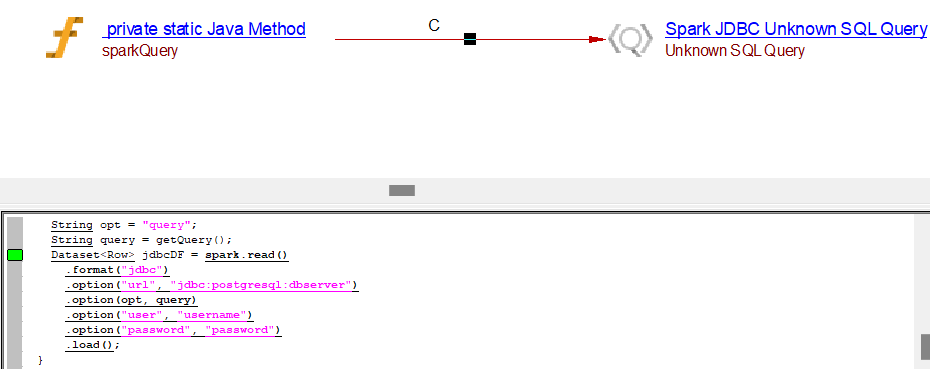 | Spark JDBC Unknown SQL Query | an object is created for SQL query found and the exact query cannot be resolved |