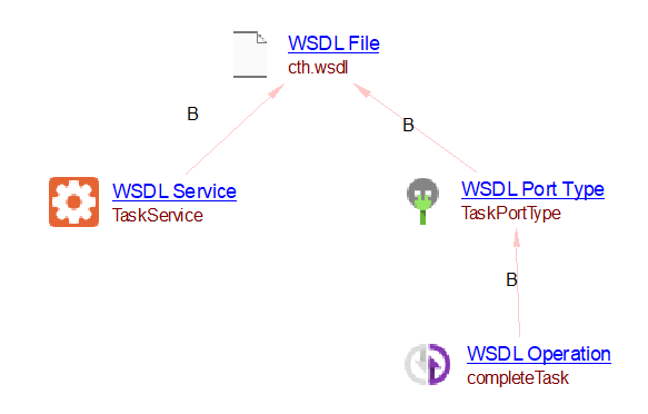 The analyzer will create a SOAP Java Operation object (with fullname TaskPortType.completeTask) together with a link to the handler method completeTask.