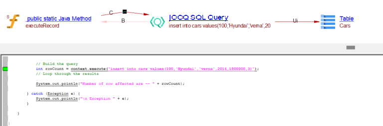 int rowCount = context.execute("insert into cars values(100,'Hyundai','verna',2016,1500000,3)");
