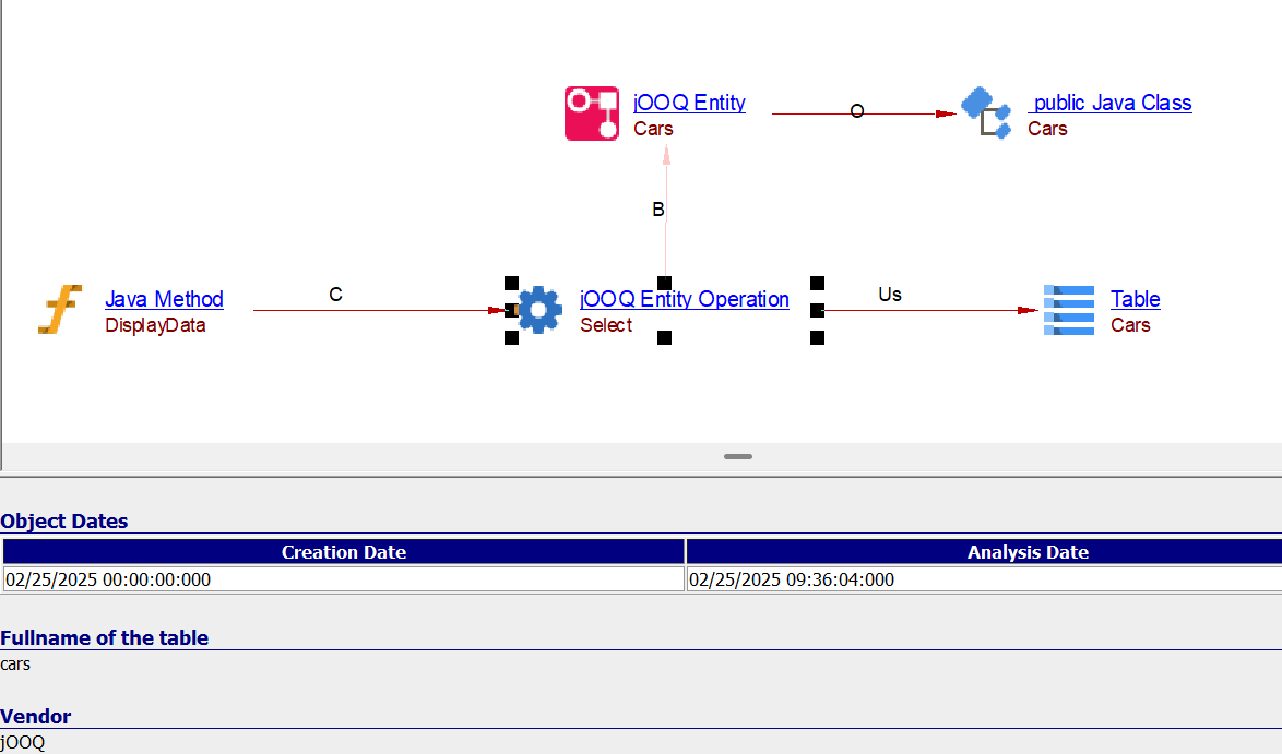 If your Java application contains CRUD operations with fluent API or “raw” SQL queries in its source code provided by jOOQ packages and you want to view these object types and their links, then you should install this extension.