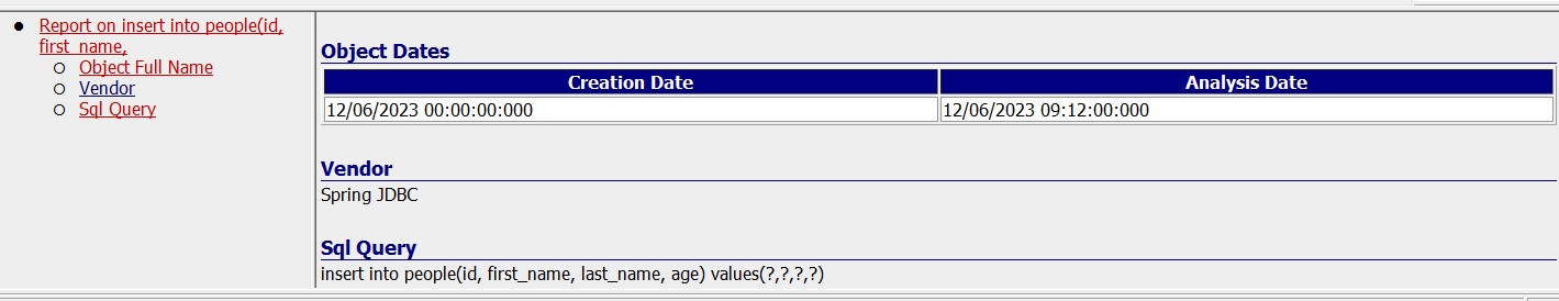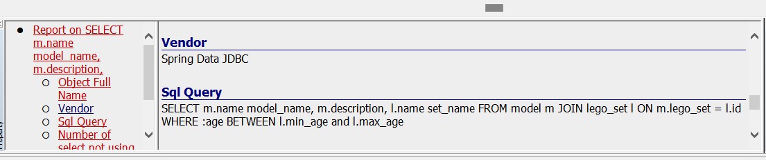 This extension is specifically targeted at the Spring Data and Spring JDBC frameworks and should be used in conjunction with the JEE Analyzer extension. CRUD operations and Named Queries (@NamedQuery and @NamedQueries Annotations) are supported for JPA and JDBC. In addition, this extension provides support for JdbcTemplatewhich is the main Spring JDBC API, which allows access to almost all functionalities of this framework. We focus here on running basic queries and running queries with named parameters.