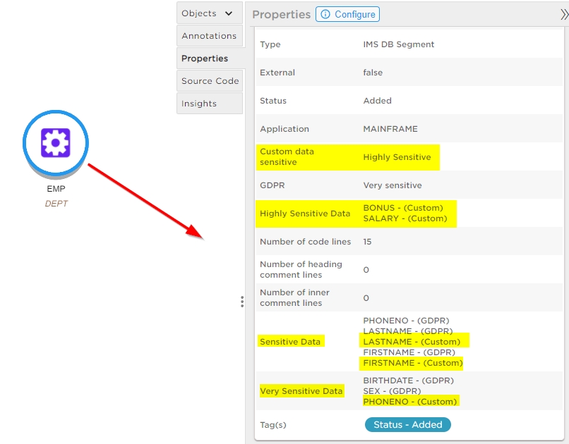 This extension, when installed with the Mainframe Analyzer (≥ 1.0.8), will search your Mainframe objects for specific key words (that you define) and when a key word is found, a property will be added to the object that marks it as sensitive.