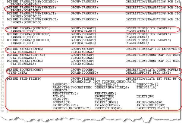 CICS CSD flat file example