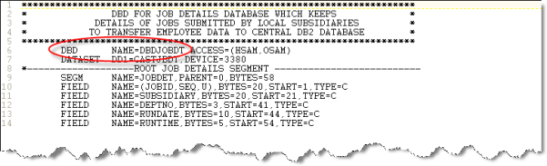 If the program works with IMS/DB, then you need to obtain the DBD and the PSB files associated to the IMS databases accessed by programs. You can search for the DBD using the “DBD[ ]+NAME=” string.