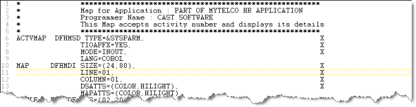 There is a similar concept in an IMS DC environment (supported in AIP Core ≥ 8.3.19 or by the Mainframe Analyzer extension, see Mainframe - IMS DC support): screens are described in MFS files and the MFS language is a macro language like BMS. MFS can be analyzed by the Mainframe analyzer since AIP Core ≥ 8.3.25 or by the Mainframe Analyzer extension.
