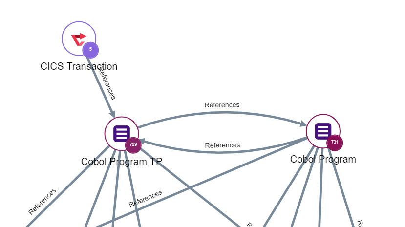 A COBOL-based application can have a transactional part. This step explains how to find out usages related to transactions and helps the reader to identify the corresponding components. The Mainframe Analyzer can analyze on-line programs developed to run on the CICS environment. It works with several types of information: