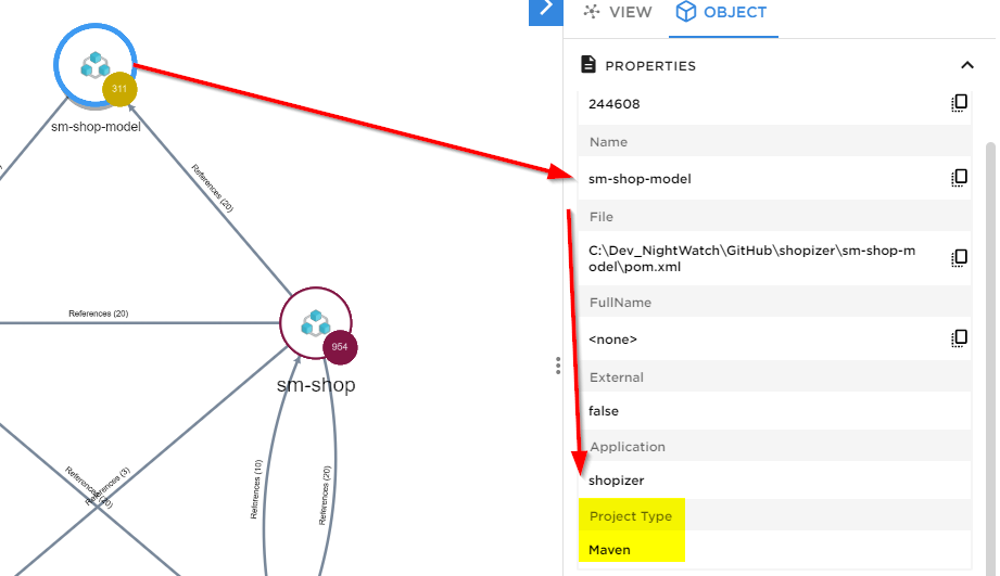 Properties panel for a selected node (i.e. a project), showing the project type (Maven):