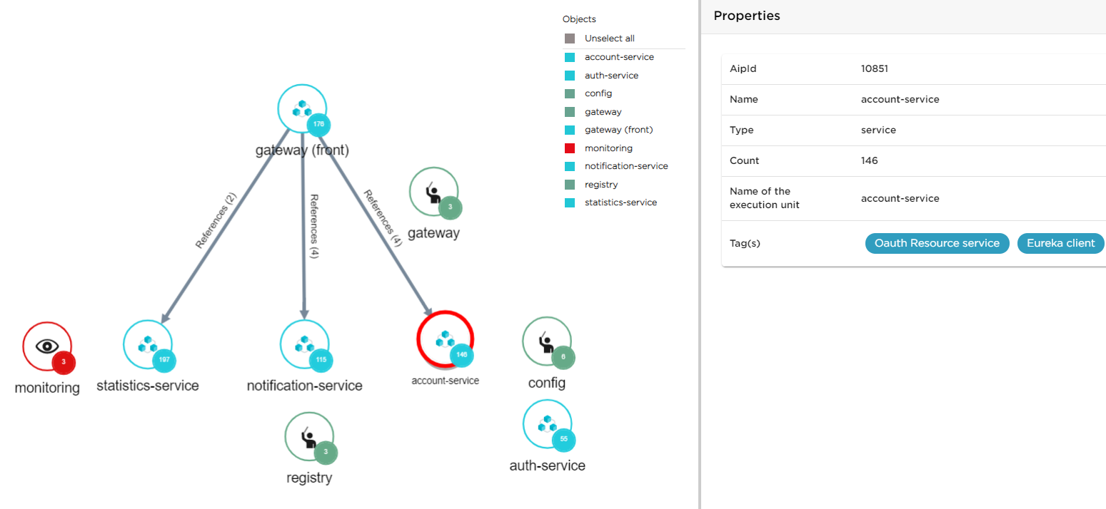 We have analyzed the project PiggyMetrics, whose Component view is provided as part of the project documentation and we compare this with the Component view calculated by this extension: