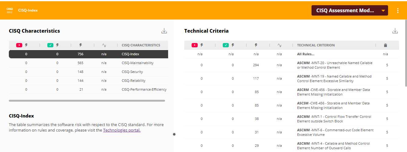 | 1062101 | CISQ-Maintainability | Business Criterion |