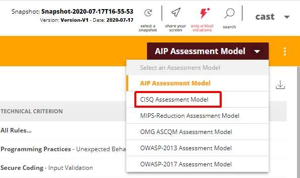 Only the CISQ-Security Business Criterion will be available (due to the default filtering implemented in the Security Dashboard):