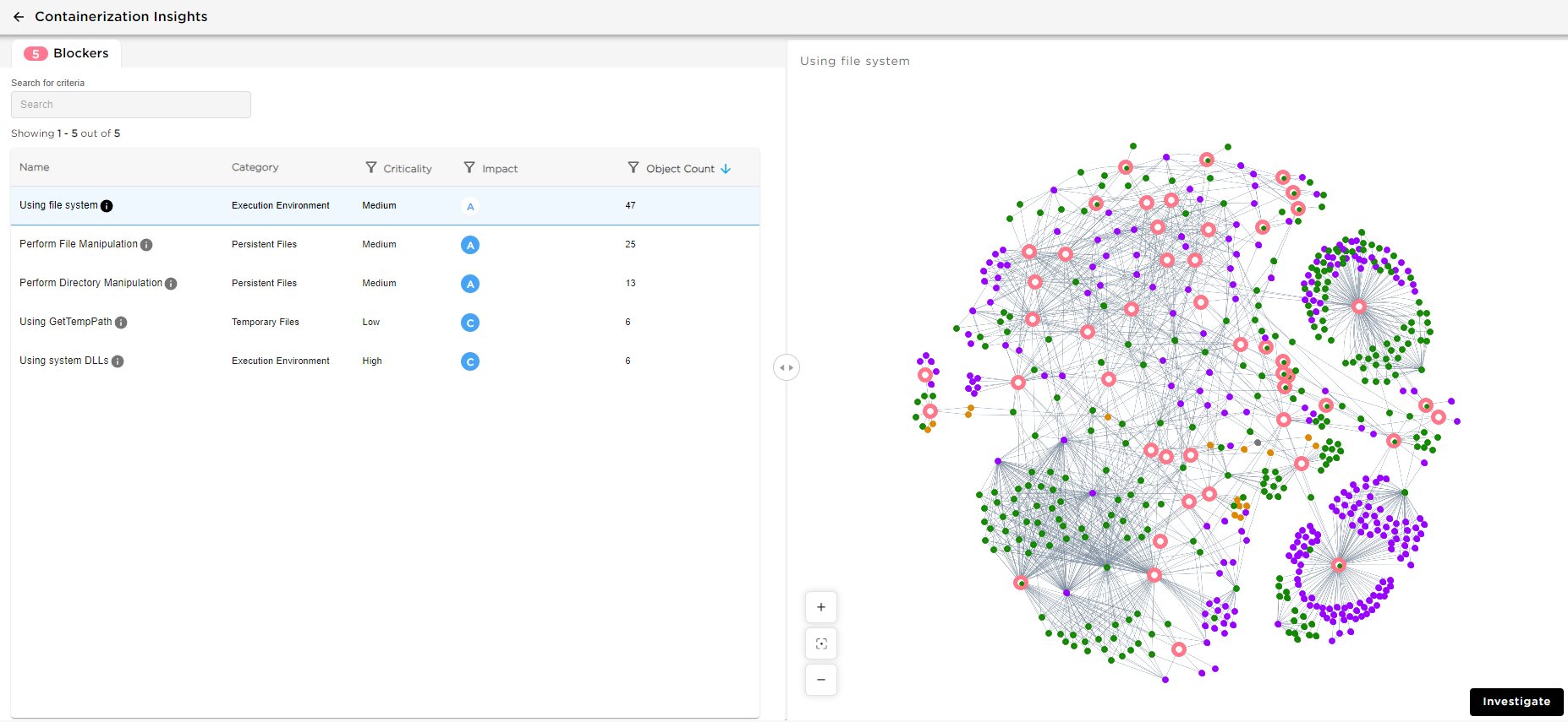 CloudReady Blockers and Boosters / Containerization Blockers data