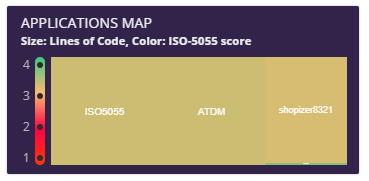 By default, the tiles in this view use the root ISO-5055 Business Criterion (ISO-5055), but you can also use any of the ISO-5055 business/technical criterion for the “qualityIndicator” parameter: