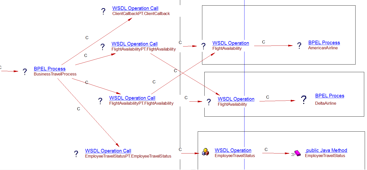 Client side: BPEL: Invocation of EmployeeTravelStatusPT.EmployeeTravelStatus: