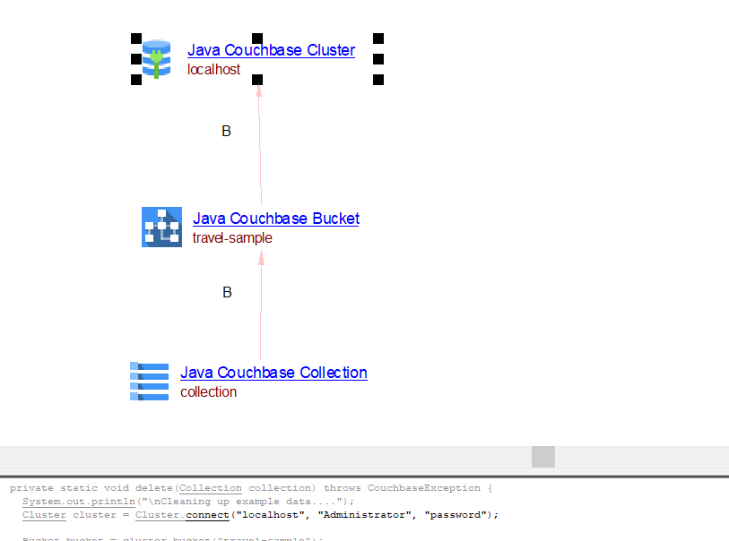 • From Java Couchbase Collection object to Java Couchbase Bucket object and Java Couchbase Bucket object to Java Couchbase Cluster object