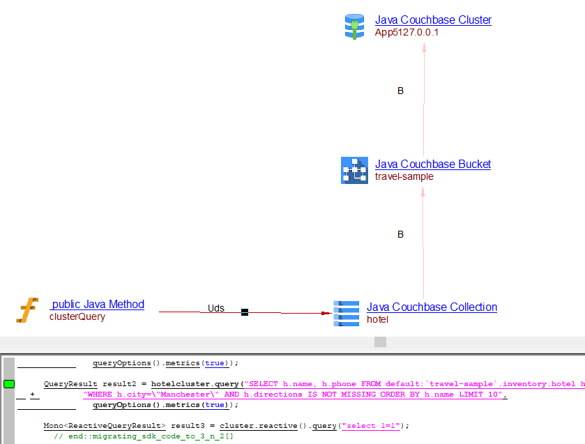 QueryResult result2 = hotelcluster.query("SELECT h.name, h.phone FROM default:`travel-sample`.inventory.hotel h\r\n"