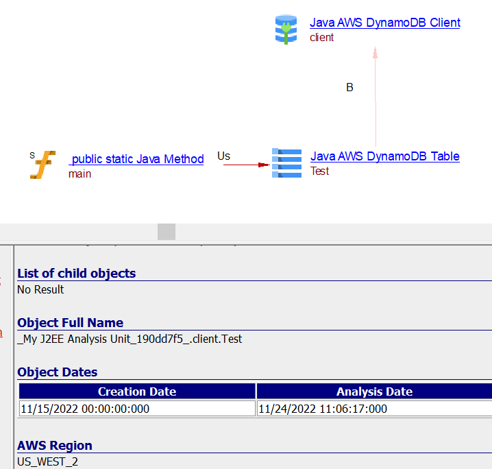 | useLink | Between the caller Java Method objects and Java AWS DynamoDB table object | - | - | - | ||