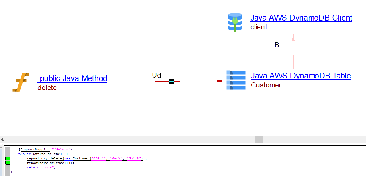 | useDeleteLink | Between the caller Java Method objects and DynamoDB client | delete deleteById deleteAll deleteAllById |