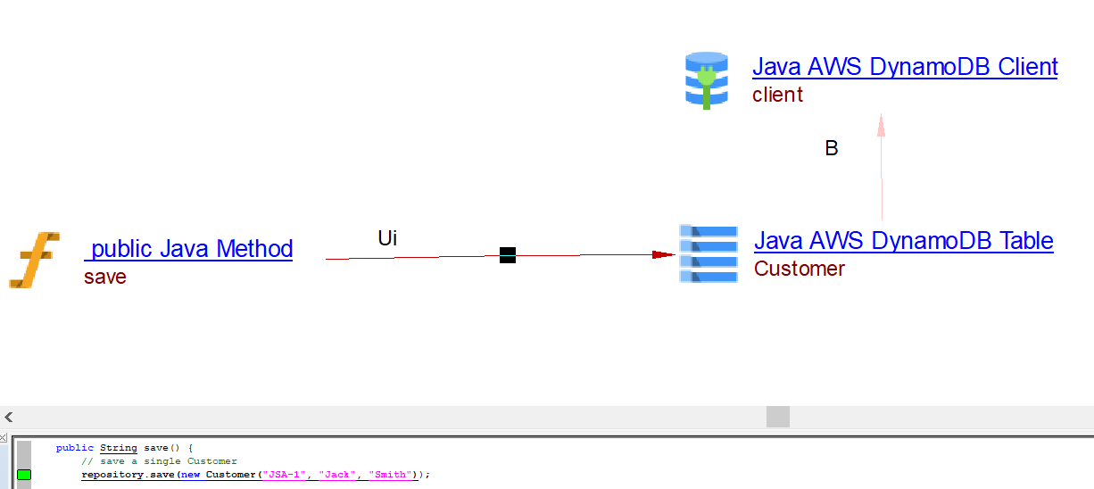 | useInsertLink | Between the caller Java Method objects and DynamoDB client | save saveAll |