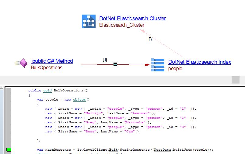 | useLink | Between the caller .NET Class / Method objects and DotNet Elasticsearch Index objects | Bulk BulkAsync DefaultIndex |