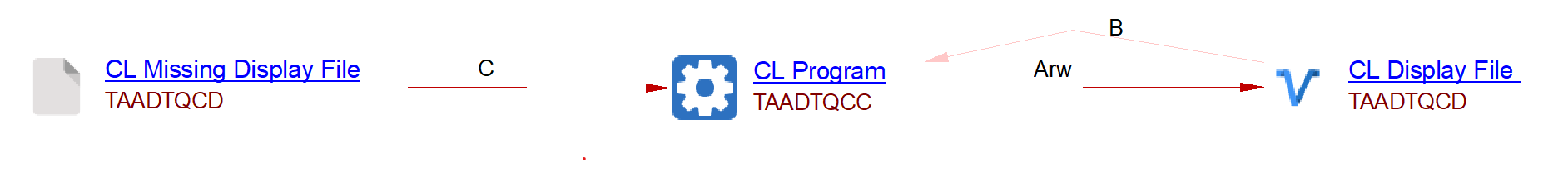 When the DDS Physical File is present the CL Missing Disk File is replaced by the DDS Physical File or DDS Logical File object and an additional link is made from the CL program to the DDS Physical File or DDS Logical File. Also, If Table or View are found by the com.castsoftware.sqlanalyzer extension then these objects are prioritized as follows: