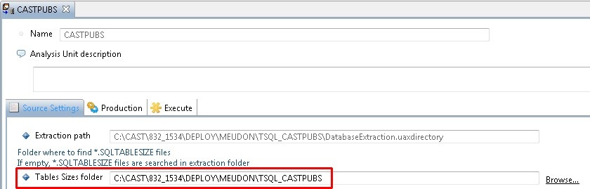 The Table Sizes Folder option in the relevant Analysis Unit editor in the CAST Management Studio does not exist for Universal Analyzer Analysis Units which are used for the SQL Analyzer extension.