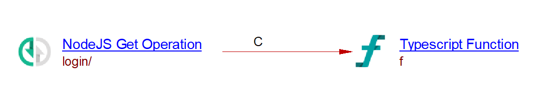 The analysis of the following code will create a Node.js Get Operation named /login with a call link from the operation to the handler function f:
